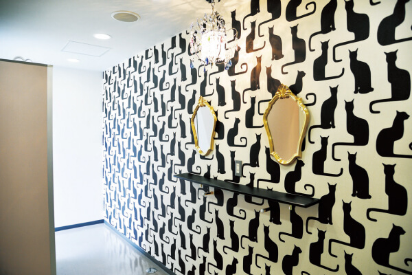 2号館の女子トイレには、オシャレなパウダールームが完備されています。