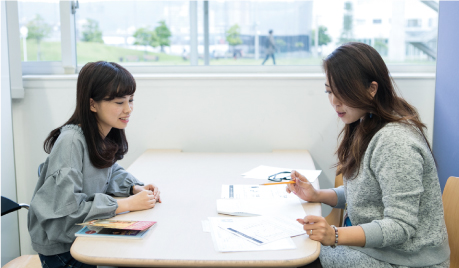 就職活動時にはキャリアカウンセラーが履歴書やエントリーシートの作成指導や面接練習を行います。学生一人ひとりと密接にコミュニケーションを取りながらサポートできるのは、少人数制教育である本学の強みの一つです。