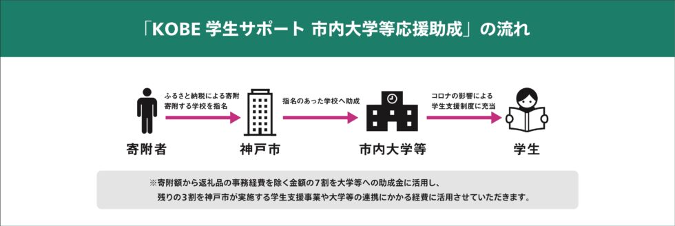 新型コロナの影響にも負けず頑張る学生を「ふるさと納税」で応援できる、KOBE学生サポート「市内大学等応援助成」に関するお願い