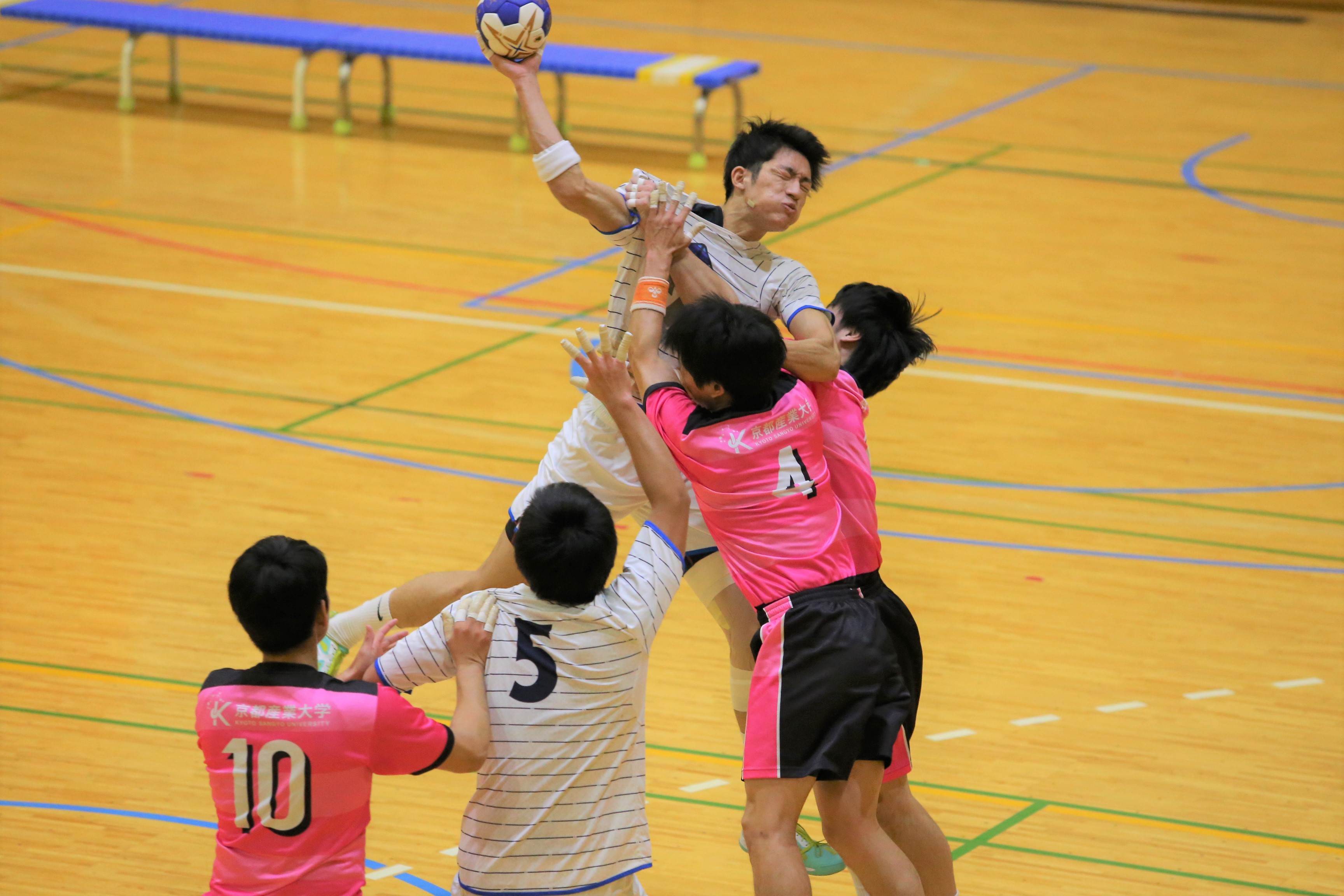 ハンドボール部に入る時、正直なところまだまだ弱いチームだなという印象でした。ですが、“これから強化していく”というお話を聞いて、練習できる環境も整っているし、自分もその一員になって活躍したいと感じ入部を決意しました。それからは、「一部昇格」を目標にし、一つ一つの練習を意識高く取り組みながら、苦手なところは自主練習で補う日々。そんな中、チームをより強くする出来事がありました。リーグ戦の最終節、勝てるだろうと臨んだ試合でまさかの負け。とても悔しい思いをした自分たちは、以降それをバネにチーム一丸となり戦うようになりました。この秋季リーグで2部2位まで成績を上げ掴んだ入替戦のチャンス。相手は1部9位の京都産業大学との試合。この日エースが怪我で出場できないという苦しい状況に見舞われましたが、4年生を中心に活躍し見事勝利!一部昇格の目標を果たすことができました!