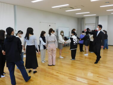 新入生レクリエーションの一つとして兵庫県警の武道の先生方にお越しいただき、女子学生向けに護身術の時間を設けました。
