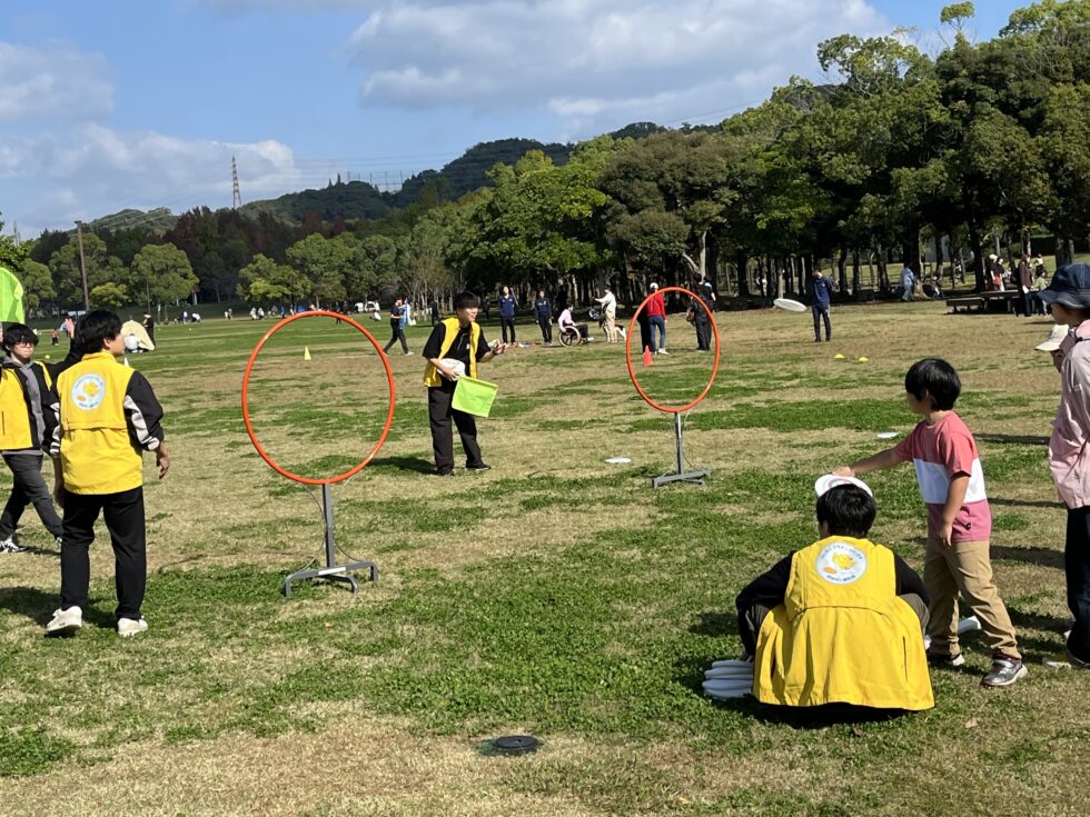 2024年11月3日㈰神戸市北区のしあわせの村で開催されたイベント・「パラスポーツ王国HYOGO&KOBE」のフライングディスク競技体験ブースのスタッフとして本学リハビリテーション学部生9人が参加しました。