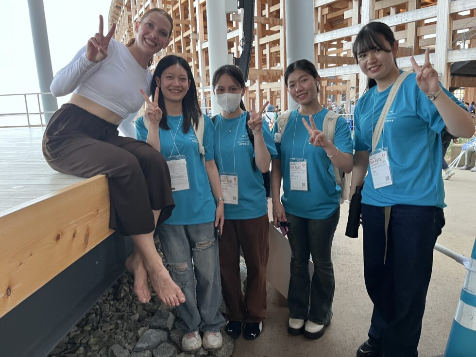 万博の会場では、海外からのスタッフと交流