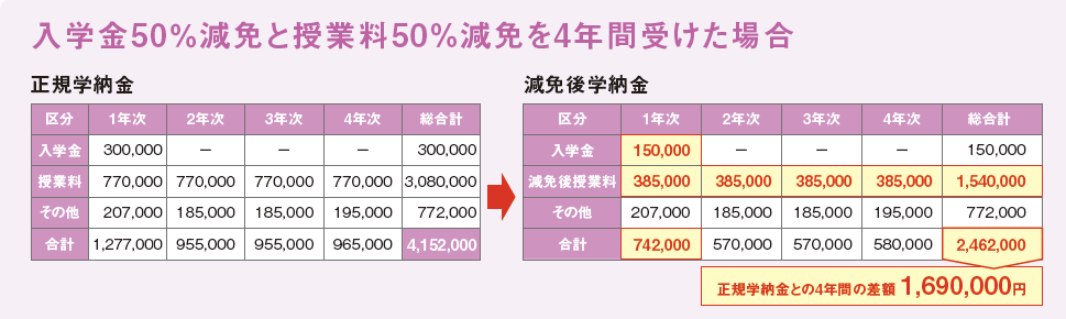 入学金&授業料50%減免(最長4年)。学費減免入試とは