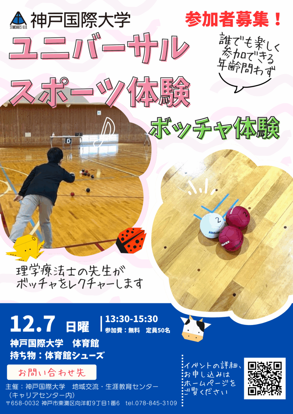 12月7日(日)13:30~ 本学体育館にて、ユニバーサルスポーツ体験「ボッチャ」を行います。
