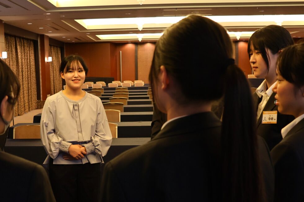 海外インターンシップで来年2月から2か月間、タイのホテルで実習する南部さんも高校生と触れ合うのは初めてだった。「緊張しましたが、みんなすごく素直でした。姿勢と見た目が接客業では1番大事な部分であることが伝わったと思います」と笑顔で高校生を見つめていた。タイでの実習に備えて11月からホテルオークラ神戸でアルバイトを始めた。「タイでは英語力も不可欠。それ以外にも学ぶことはたくさんあります。お客様がこのホテルに来て良かったと思ってくださるような接客ができるようになりたい」と目標は高い。カフェめぐりが大好きで、将来は「地元のおすすめスポットなどを紹介して共有するなど、コンシェルジュの仕事に1番就きたい」と夢を膨らませている。