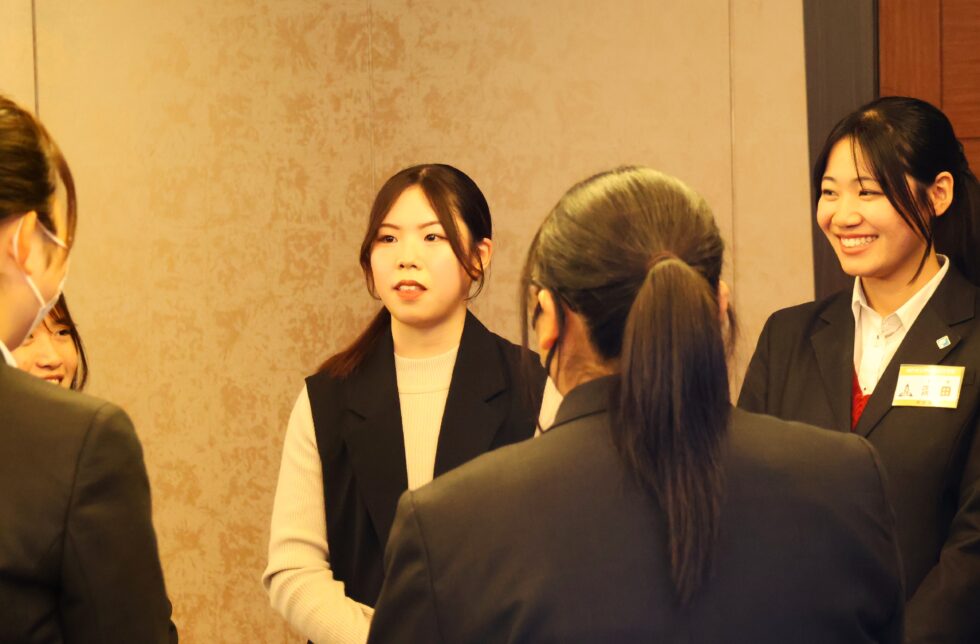 ホテルでのアルバイトで接客力をつける河合さん(中央)
