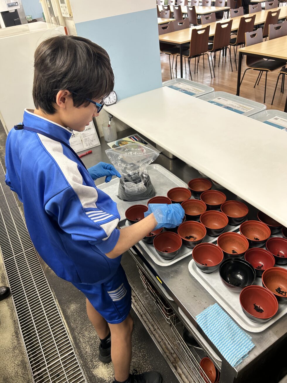 食堂ではお味噌汁の具材をお椀に入れたり、タルタルソースを作ったり、お客さんにお味噌汁をついでお出ししたりいろんな体験をしました。