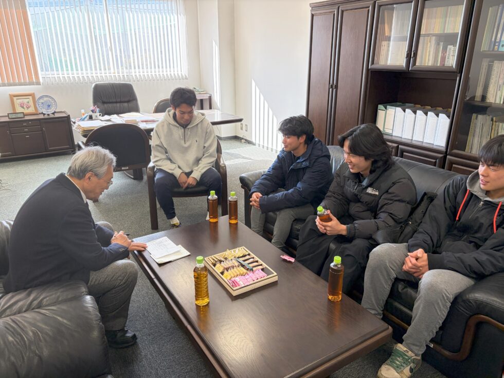 3部リーグ昇格、優秀選手賞受賞、本学サッカー部のフェアプレー賞受賞への労いのお言葉や今後の活躍に向けた激励のお言葉をいただきました。