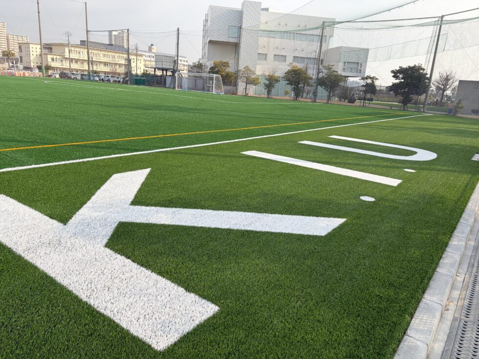 本学のグラウンドが人工芝グラウンドしてリニューアルしました。